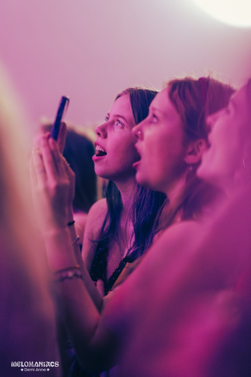 From the very first moment, their performance was enchanting, sparkling as much as her cotton candy colored backdrop lights. Déyyess is a star at engaging her audience, looking into the crowd, holding fans’ hands, and being visibly excited just to be on stage. The fans this evening were just as sweet: playing ‘if i was ur boy’, Déyyess got handed a Dutch flag that the fans all signed their names on. Following this, the audience got to hear ‘crush’, a new song that incorporates interesting whispery vocals and a chorus that everyone can immediately sing along to.