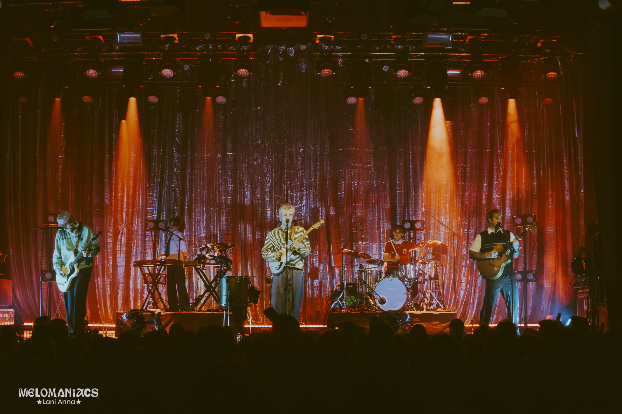 In between songs, the band spoke about how playing at Melkweg had always been something they wanted to do, so finally standing on that stage clearly meant a lot to them. Fox also asked who in the crowd had seen them live before and then jokingly followed it up with “and who’s been dragged along”, which got a lot of laughs from the audience. Things then slowed down a little for ‘The Buzz’, which Fox introduced as the only sad song on the album. Fans held up blue-lit flashlights while the room grew quiet. Everyone listened closely, creating a more intimate moment. After that, the tempo picked up again. The crowd clapped along to the intro of ‘Wonderful Life’, and after ‘Kids Don’t Sleep’, the band took a moment to introduce themselves. Guitarist James Koates, drummer Duncan Brookfield, keyboard player Teresa Origone, bassist Scott Verrill, and, of course, singer Oli Fox were the sole reason for everyone’s cheerful medicine music tonight.