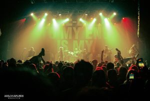 Continuing her set with her catchy song ‘Bad Day’, the crowd sings along every word loudly. Charlotte is the kind of talent who can capture the attention of the entire crowd, no matter whether they are familiar with her music or not yet. She engages with the crowd as much as she can, and her catchy songs and powerful lyrics are hard not to enjoy in a live setting. Midway through her set, Charlotte takes the time to perform two of her songs acoustically, pulling out a binder of her entire discography to help her with that. Here she asks two fans in the crowd to choose a song for her, handing over her binder to them. She is visibly very excited as the first fan-made choice ends up being ‘Phantom Pain’, the song that was her first ever released song back in 2018. ‘Six Feet Under’ is the second choice made, and she mentions that it is one of her favourite songs she has ever written.