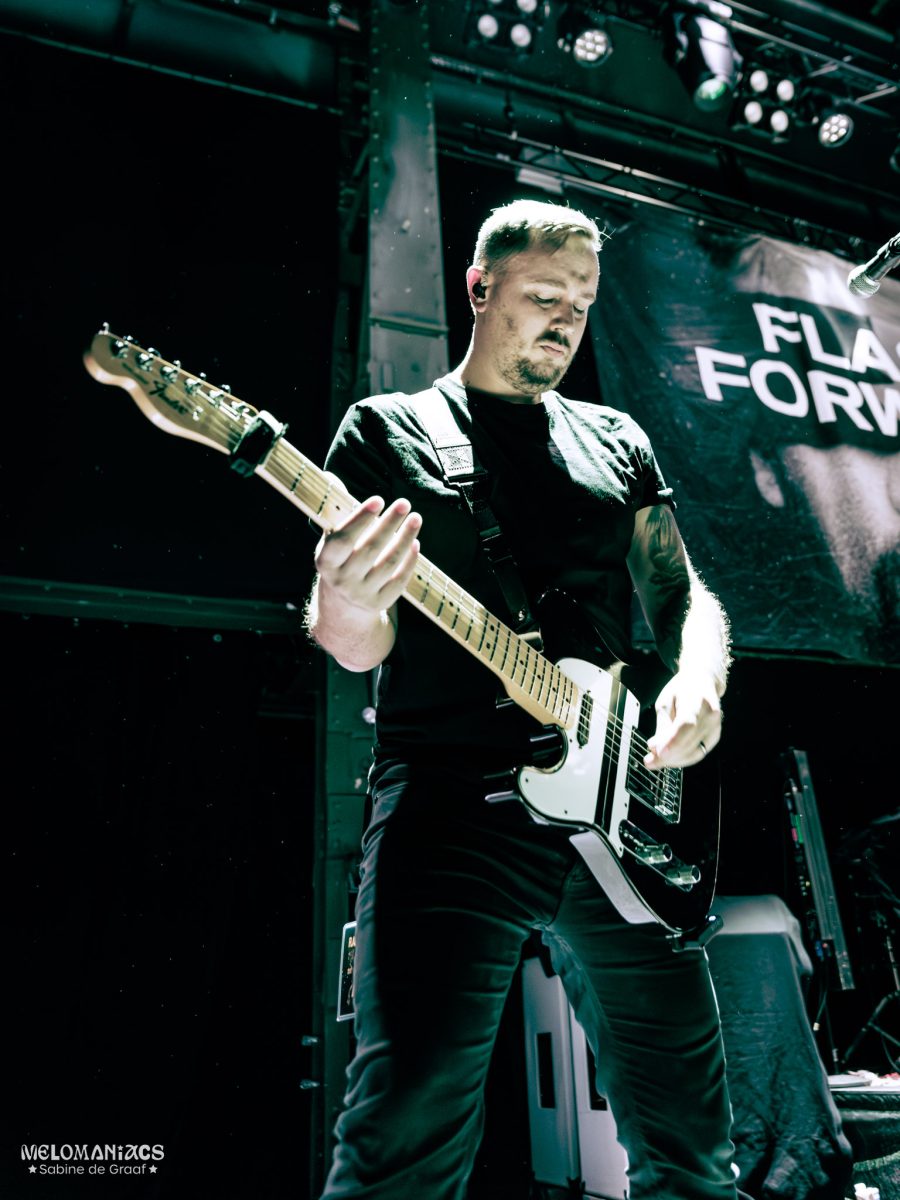 As is usual in Germany, the crowd shouted for a “Zugabe” as soon as the band had left the stage. The audience didn’t have to wait long for that encore. A microphone was placed in the middle of the crowd so that Wiegel could perform the next song there. Before playing ‘No Use’ on his acoustic guitar, he told the audience how important it is to spend the holiday season with people who are good for you, whether they are family or not. He wrote this emotional song for his mother, who has unfortunately passed away. As soon as the song was over, Wiegel wasted no time as he said that while emotions are great, one has to also be able to move on. He made it back onto the stage to play ‘Lucid Dreaming’ and ‘Bloodshot Eyes’. During the latter, Wiegel motioned for the crowd to split right down the middle, which created a wall of death. Finally, Flash Forward ended their set with ‘Dancing in the Dark’. During this song, two crew members joined the band on stage playing guitars, and Wiegel stagedived before singing the final notes of the night on top of a fan’s shoulders.