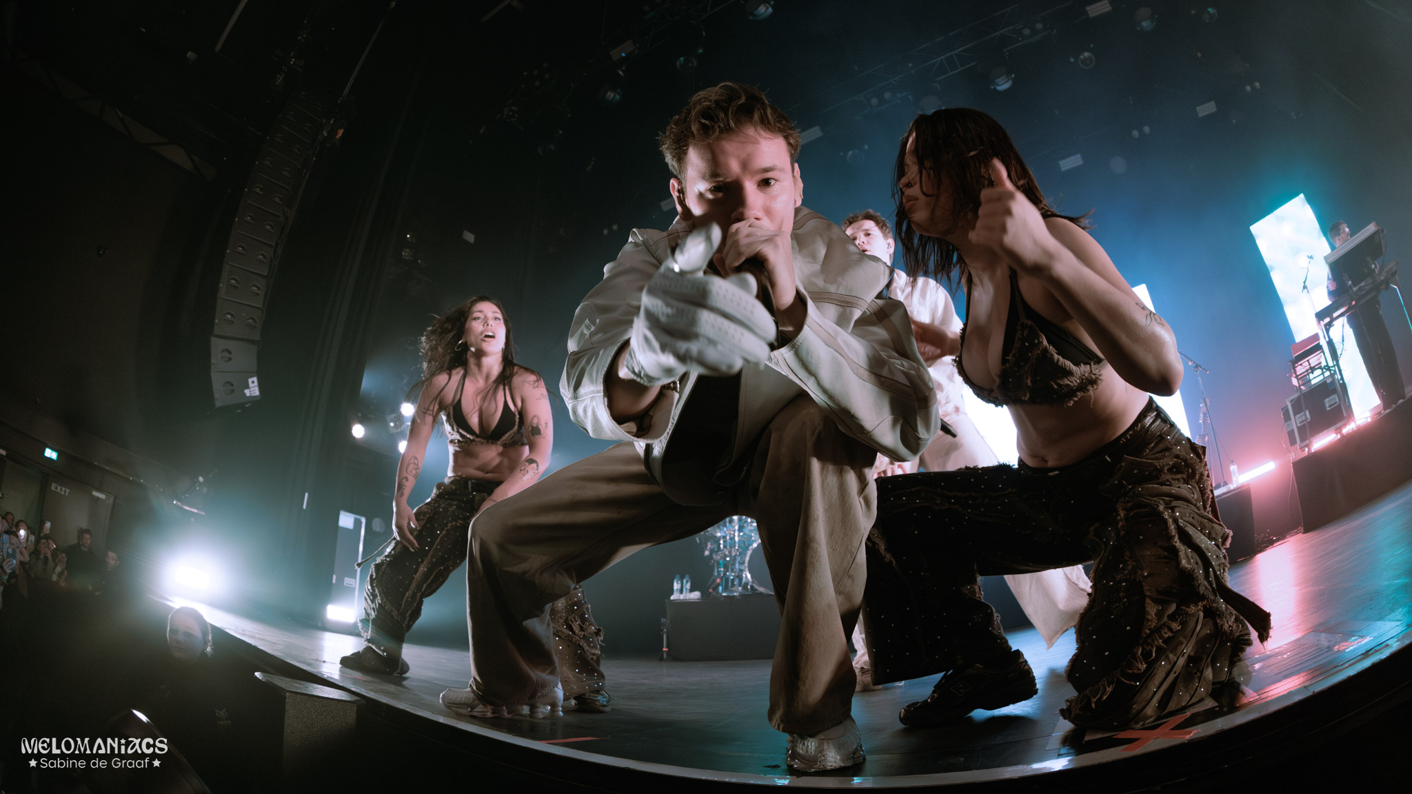 Inside the venue, it took one more hour of waiting before the boys would finally show up. A DJ filled the silence by playing a lot of iconic songs, including Zara Larsson’s ‘Lush Life’ and Joost’s ‘Europapa’ – the Dutch 2024 Eurovision entry that the twins themselves love a lot. Finally, at 20:00, the lights went out, and the intro started playing over the speakers while a video played on the LED screens visible at the back of the stage. A bunch of clips were displayed, including ones from the twins as little kids, which led to loud cheers, and clips of fans from previous concerts. “The Room is not only a story you watch, it’s a space you enter,” were the words spoken and displayed at the end of the video, referring to the twins’ latest album, The Room. As soon as everything went dark again, Marcus and Martinus came on to open the show with ‘We Are Not the Same’. Halfway through, the boys were joined by two dancers, Jennifer Pacaanas and Miinaa Kjellbom, who would be performing a lot of the choreography with them tonight. As soon as the song was over, the twins also took the time to introduce their band: keyboardist Olle Tidblom, drummer Gurkan Lannebjer and guitarist Anton Ramsö. They then continued with the unreleased song ‘Bad’ and the 2016 hit ‘Girls’.