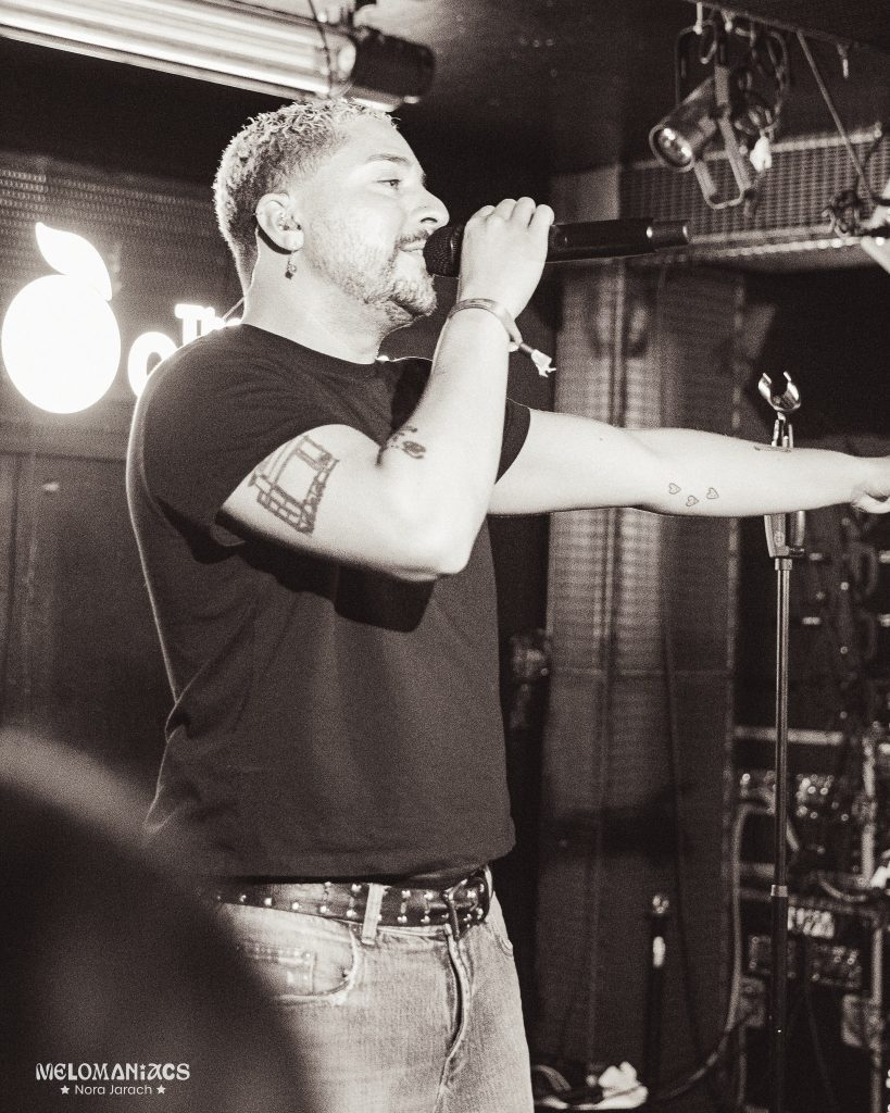 Welsh artist Ben Ellis played a gig at the Stage 15. Flowers decorated his and his guitarist Ellis Blake’s mic stands. Passionate fans in the front row were wearing his merch and held up flowers during the song ‘when it ends’. During ‘No One Sleeps In Hollywood’, when Ben sang “I’ve been told no one sleeps …”, people shouted “where?” back at him. They also loudly sang along to ‘Red Handed’.