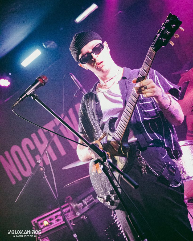 At 19:00, American band The Dark.FM played a set at the Bahnhof Pauli on their first small tour through Germany. Ten minutes after their set had come to an end, Chloe Slater took to the stage of Uebel & Gefährlich. Her fans had been anticipating her set for quite a while and were visibly excited when she walked out. In the crowd, she spotted someone wearing her merch, gave them a shout-out, to which the fan said that they had gotten a bunch of compliments on it. All the people in attendance were dancing, vibing along, and simply enjoying the music. At the beginning of her set, Slater had unfolded a Palestinian flag to show her support and bring awareness to the ongoing genocide in Palestine. Before singing her last song, she stated that “I just want to say, free Palestine!”.