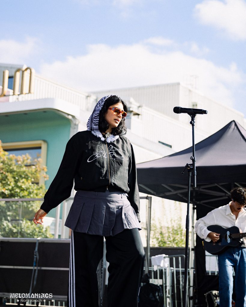 Palestinian-Swiss artist Jamila had already played a set on the second day of Reeperbahn, but played another one on the third day at Spielbude XL. These were her first gigs outside of Switzerland. It was then time for a short break from music to attend the presentation of the International Music Journalism (IMJ) Award. There were winners across different formats, such as text, audio, and multimedia. Matilda Jelitto, introduced by the moderators as someone who is known for taking a deep dive into artists, as well as discussing important topics such as feminism, won the award for German Music Journalist of the Year.