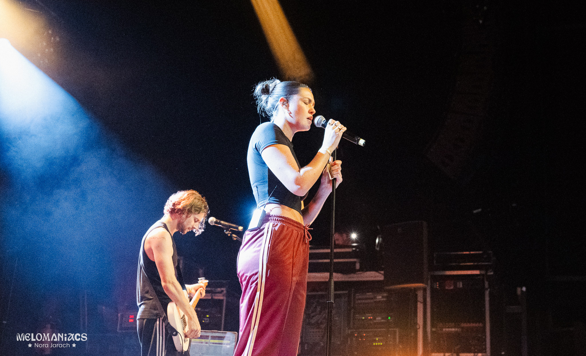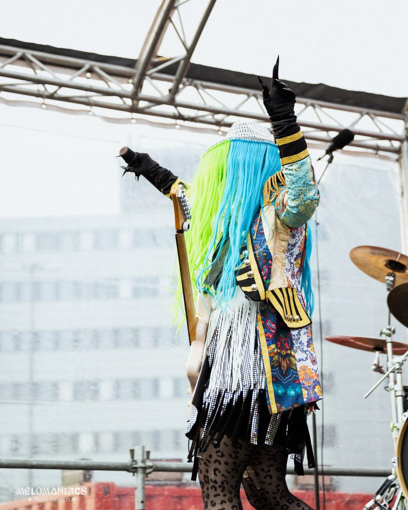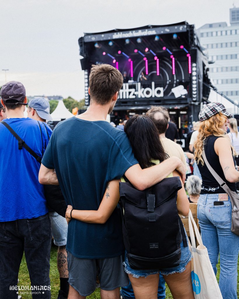 Back at the fritz-kola Bühne, German rapper Juno030 played a show together with her brother. The meadow in front of the stage was filled to the brim. “Hamburg, geht’s euch gut? Geht’s euch gut?” (transl. “Hamburg, are you doing well? Are you doing well?”) she asked the audience, which led to loud cheers. A few people in attendance were already familiar with her music, but most of them were not. Juno expressed she felt happy that so many showed up without being familiar with her work. During one of the songs, her brother left the stage, so that she was completely on her own. Juno took this moment to talk about the importance of bringing more awareness and sensibility regarding mental illnesses, such as schizophrenia. In the same Festival Village, but on another stage, Swiss artist Seraina Telli began her outdoor show right after Juno’s had ended. A crowd gathered as soon as Telli and her drummer, Mike Malloth, took to the stage to play a full-hour show. “Es war schön mit euch” (transl. “It was beautiful with you”), she said near the end of it.