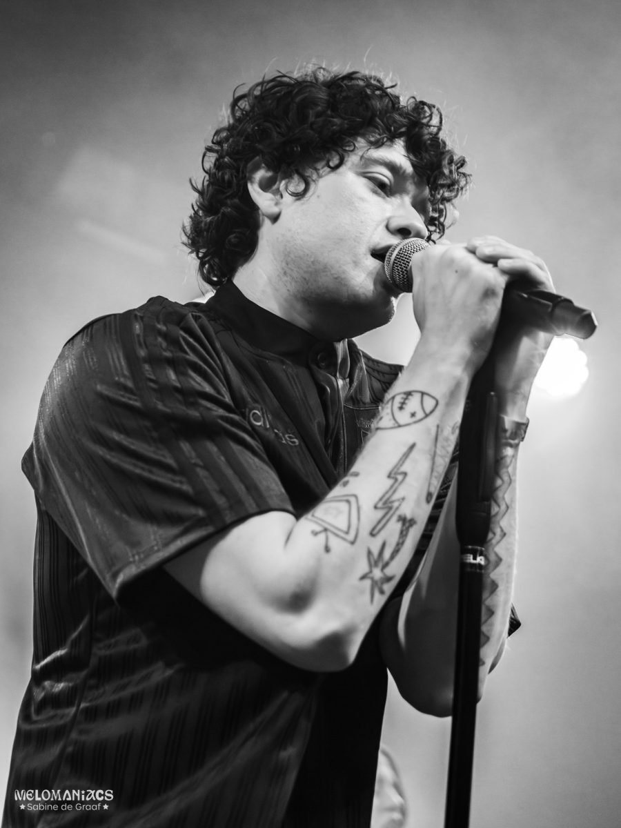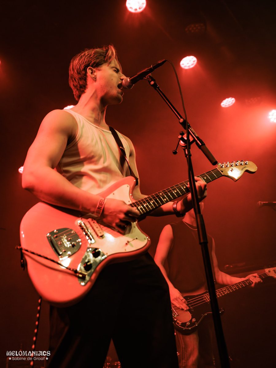 At 20:00, the second support act, Garage Flower, took to the stage. The band from Leeds, consisting of lead singer Nathan Whitehead, guitarist Dylan McQuade, bassist Josh, and drummer Charlie, has only been around since 2024. None of their songs can be found on Spotify; instead, the band has uploaded their music to SoundCloud. They opened their set with one of their ‘Soundcloud Demos’ tracks, namely ‘Jammy’. This was followed by the eponymous track ‘Garage Flower’, during which Whitehead broke one of his guitar strings. As the song continued on and eventually evolved into a jam session, the crew was working to get this issue fixed, ending up giving Whitehead an entirely different guitar for the rest of the set. “Sorry for the technical difficulties, Amsterdam!” he stated before the band moved on to ‘Bees and Honey’. Whitehead and McQuade took off their jackets as the room was getting fuller and warmer, the crowd admiring the guitar riffs. Garage Flower ended their set with ‘Alan’, a song they wrote about “getting off your tits” at a festival, and ‘Patience Is a Virtue’. The latter was truly the highlight of their set, and hopefully, it will actually be available for streaming someday soon.